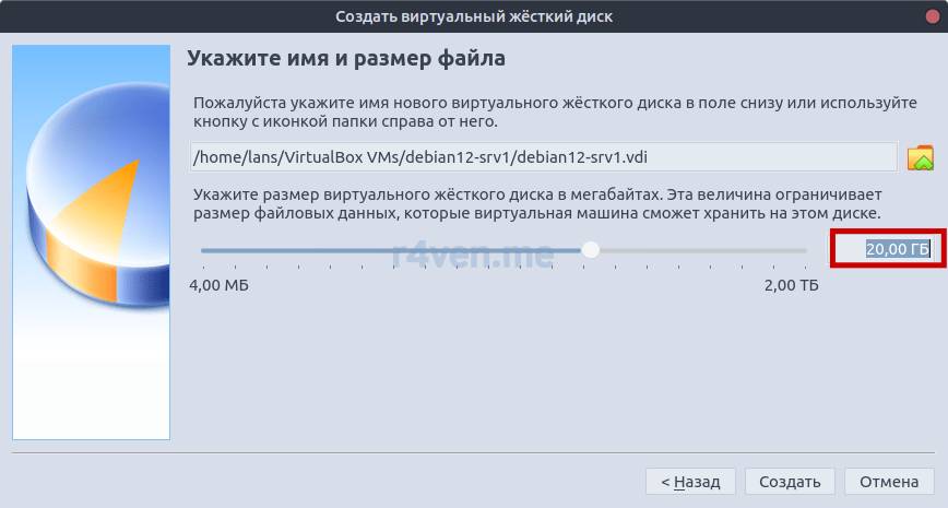 Тут я приложу лишь скриншоты создания ВМ. Подробнее про каждый шаг мастера можете почитать в другом моём посте, где мы устанавливали Linux Mint в VirtualBox: Шаг 5. Создание виртуальной машины. Единственный момент, при указании размера дискового накопителя для ВМ, по возможности, укажите не менее 20 ГБ. Это необходимо для корректной работы ВМ в будущем, когда мы будет устанавливать на неё различное серверное ПО)