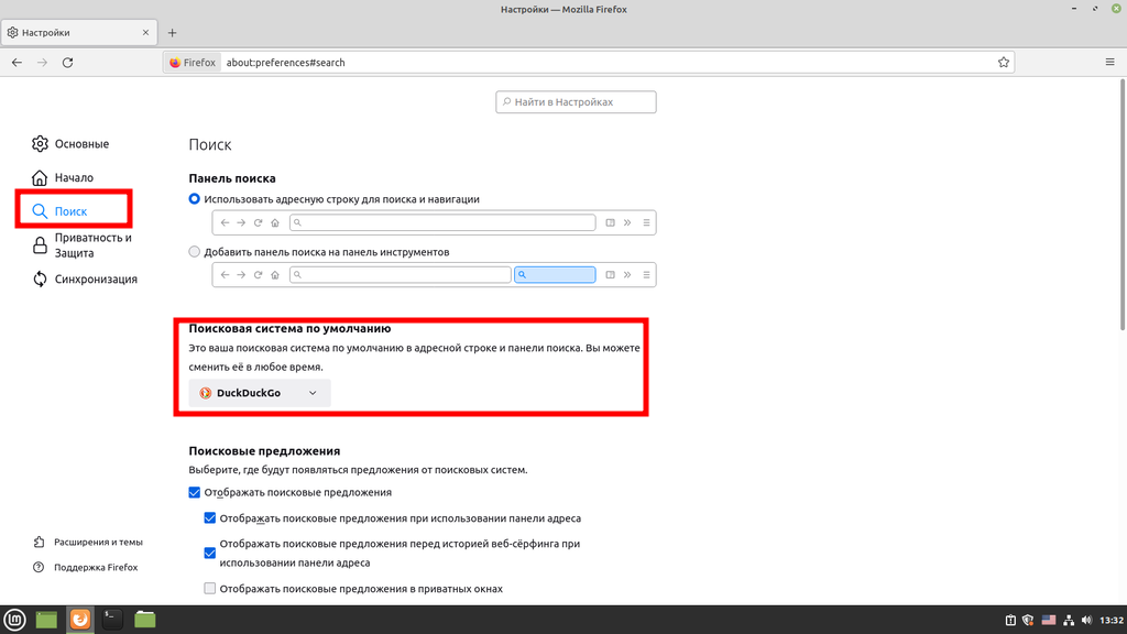 - Изменим поиск по умолчанию;