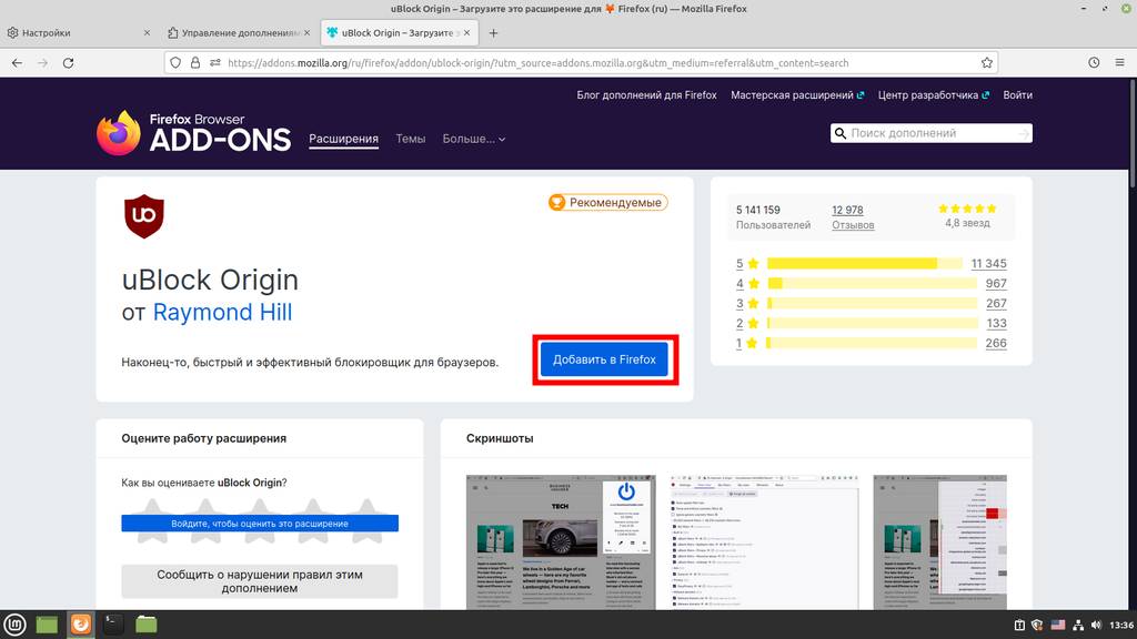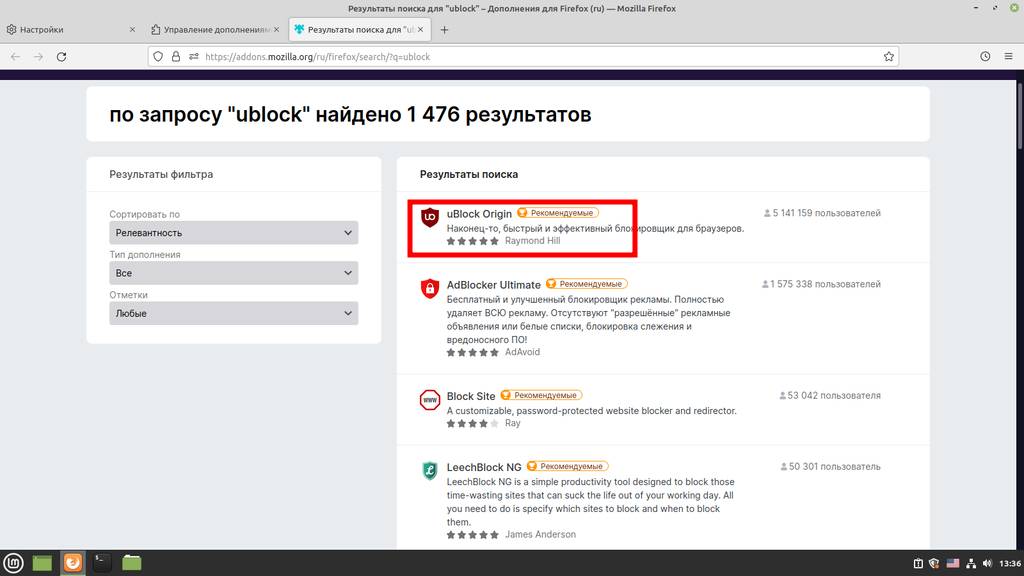 - Установим блокировщик рекламы (без него вообще нет смысла пользоваться браузером);
