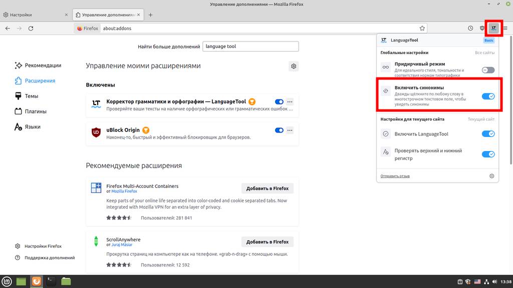 - Установим расширение, проверяющее орфографию и помогающее подобрать синонимы к словам;