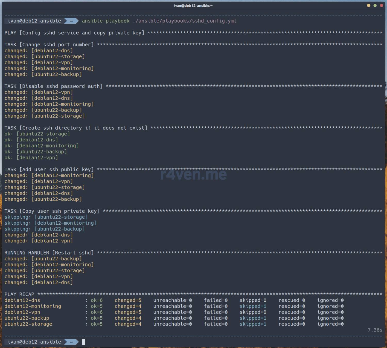 На всякий случай повторю, что плейбук также добавляет наш новый публичный (~/ansible/id_ed25519_new.pub) ключ на сервера.