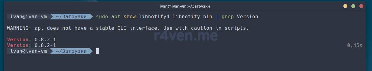 apt show libnotify4 libnotify-bin | grep VersionКоманда