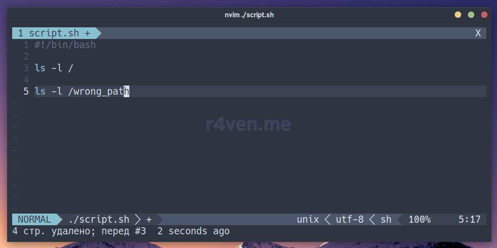 ls -l /wrong_pathНу вот, теперь, если скрипт будет запущен, например так: