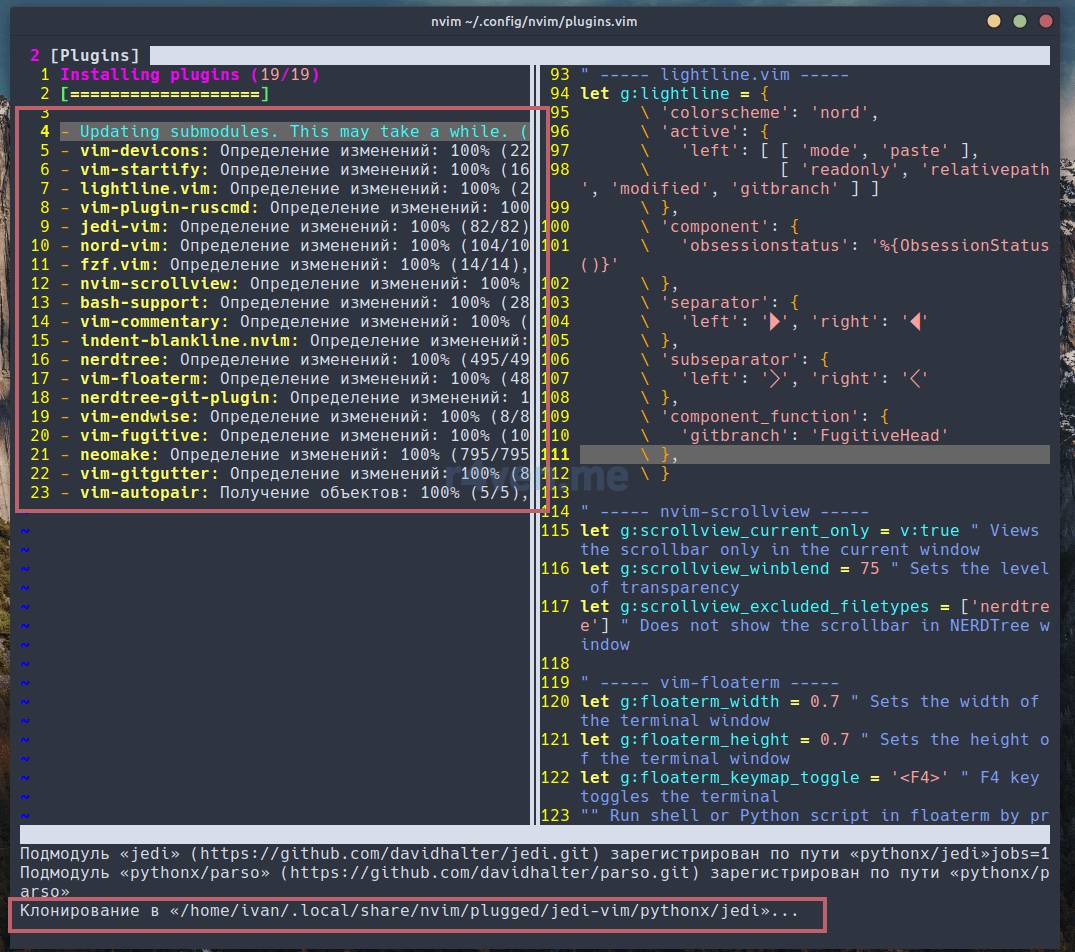 Список не маленький, но и не такой длинный, каким мог быть. Не стоит забывать, что каждый новый подключаемый плагин в своей мере нагружает редактор. Поэтому увлекаться не рекомендуется. При работе с указанными выше плагинами, я не заметил каких либо неполадок в работе Neovim. Если конечно всё встало корректно. Приступим к правке конфига.