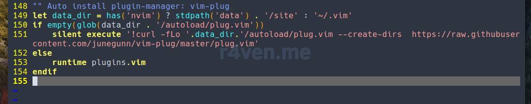 curl --create-dirs -fLo ~/.config/nvim/plugins.vim https://raw.githubusercontent.com/r4ven-me/dots/main/.config/nvim/plugins.vim