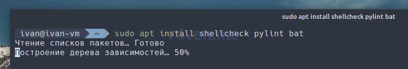 sudo apt install -y shellcheck pylint batshellcheck— линтер для bash/sh;pylint— линетр для python;bat— утилита подсветки синтаксиса при выводе текста в консоли (нам нужна для плагинаfzf).