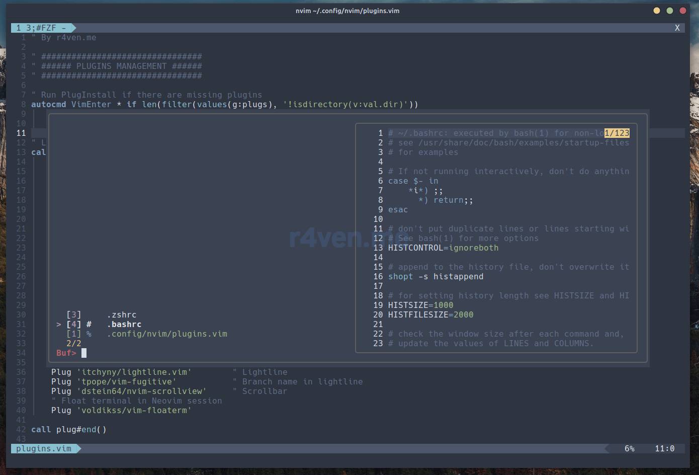 Shift+F2во всплывающем окне fzf открывается список буферов Neovim: