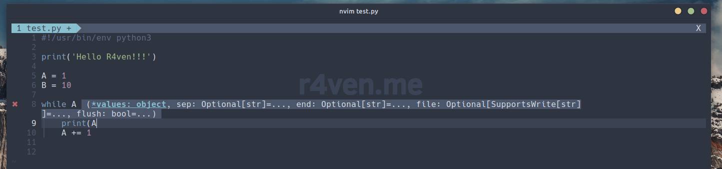 Что получим в итоге: , настраиваемая статусная строка, полоса скроллинга, интеграция линтеров для языков программирования Bash и Python, поддержка git, боковая панель с деревом файлов проекта, ну и, т.к. Neovim имеет поддержку LSP, подключение библиотеки автодополнения на основе сервера ЯП Python. И многое другое.