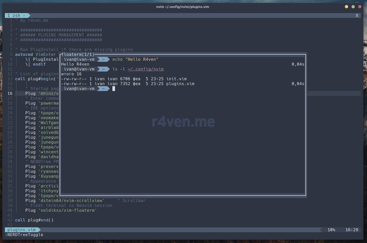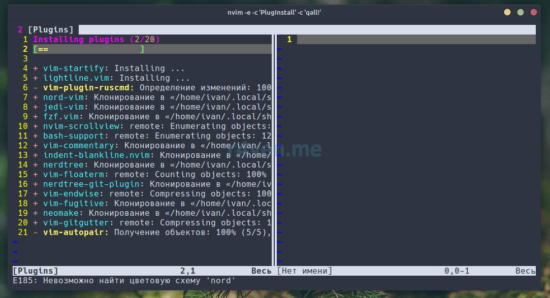 nvim ~/.config/nvim/plugins.vimДолжно получиться так:
