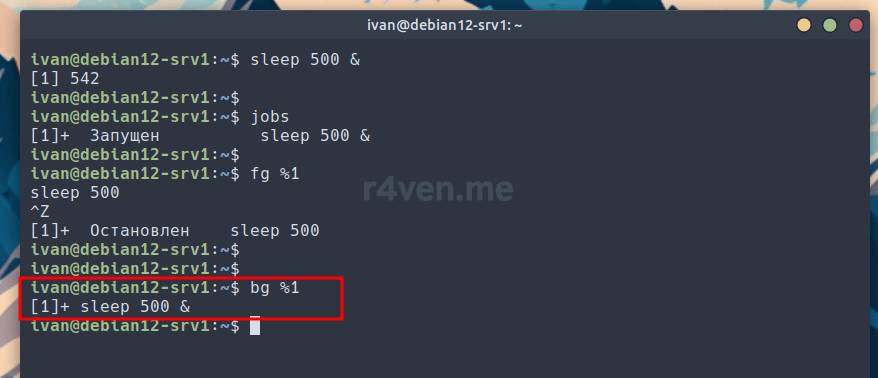 Следующей командой, которой мы воспользуемся для возобновления остановленного фонового процесса — команда bg (background).
