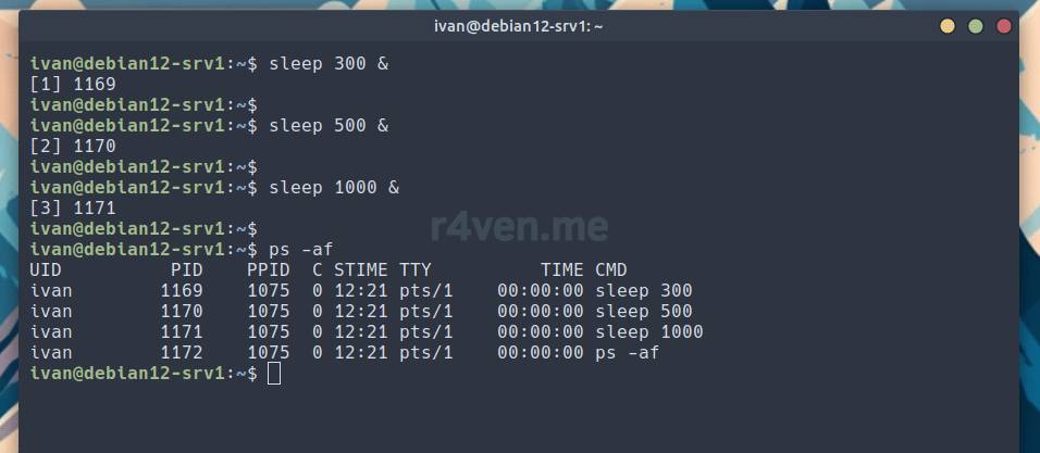 Например, запустим 3 процесса командой sleep: