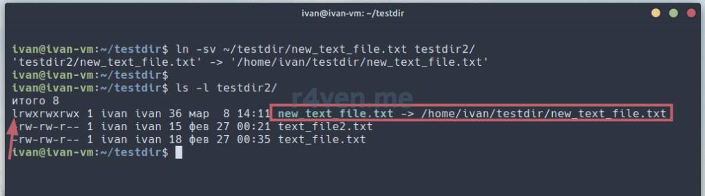 xed new_text_file.txtИ так, мы в директории ~/testdir, давайте создадим символьную ссылку наш файл ~/testdir/new_text_file.txt в поддиректории testdir2: