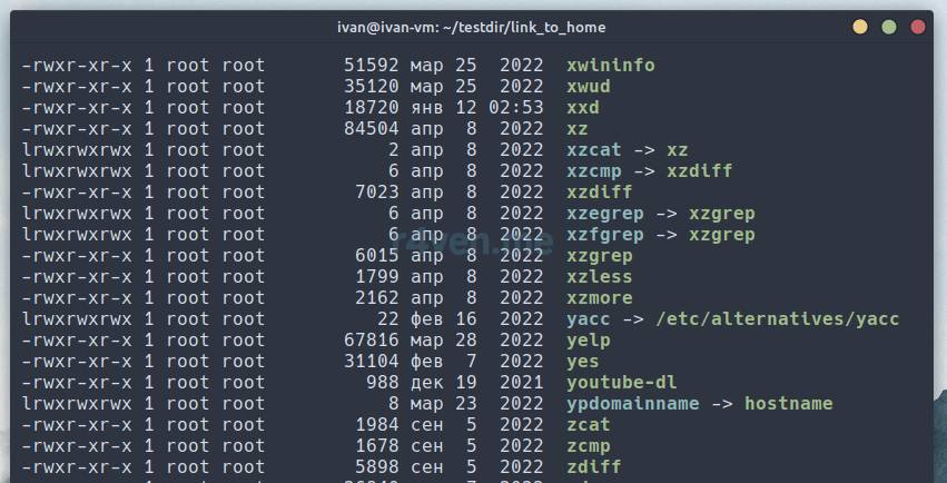 Для интереса, выполните команды ls -l в директории /usr/bin, где хранятся исполняемые файлы и посмотрите, сколько там символьных линков и куда они ведут: