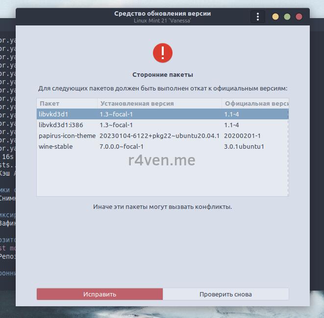 - Установлены программы, которые отсутствуют в официальных репозиториях (будут удалены в ходе обновления).