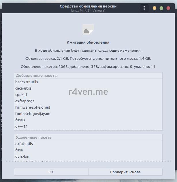 Сегодня мы выполнили апгрейд системы Linux Mint 20 до Linux Mint 21.1 с помощью штатных средств ОС — официальной утилиты обновления mintupgrade.