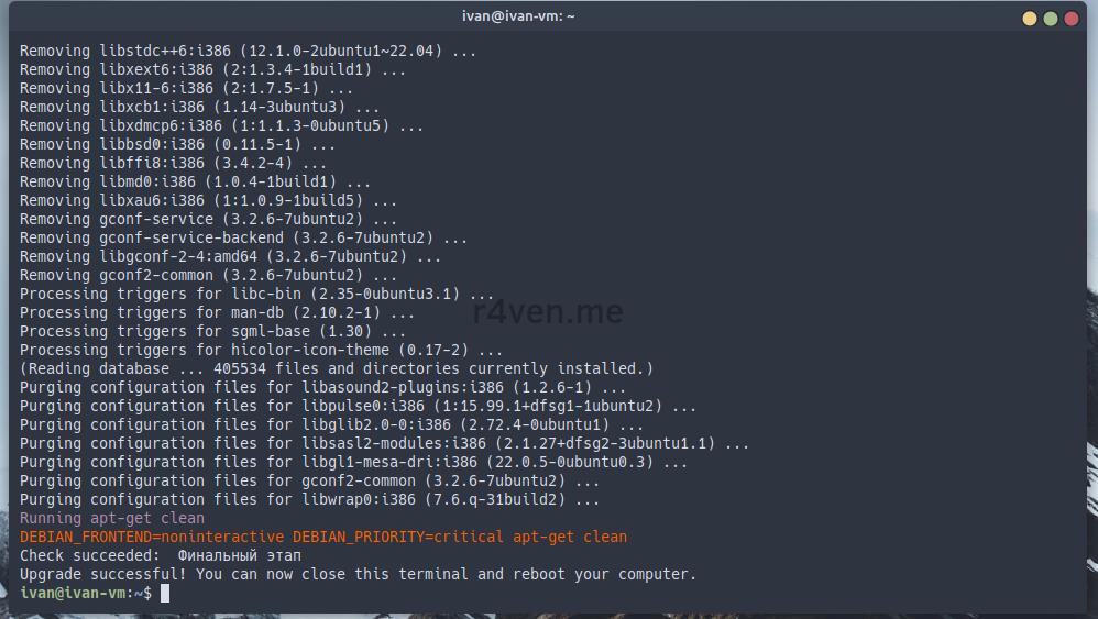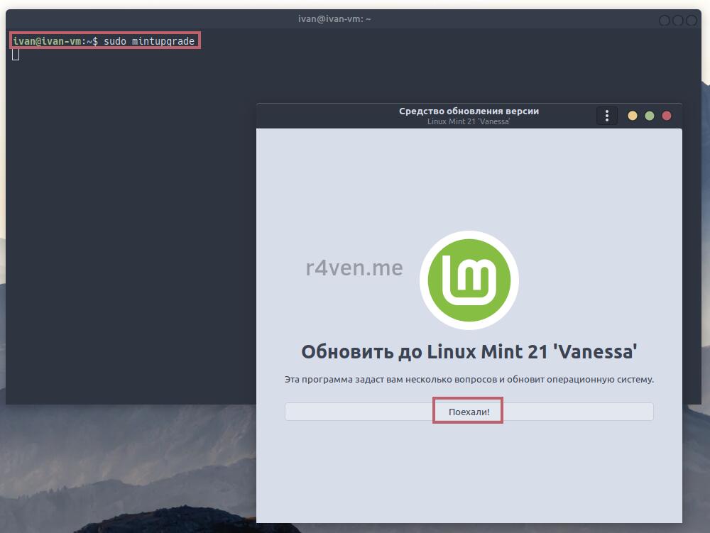 После того как мы сделали бэкап, можем смело устанавливать и запускать утилиту апгрейда до 21-й версии системы. Открываем терминал и вводим такую команду: