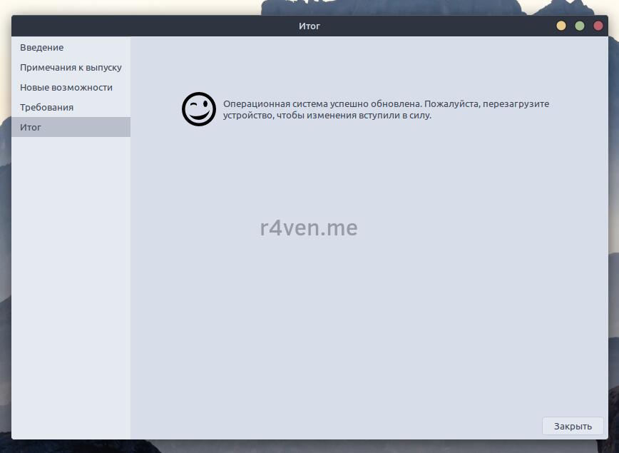 sudo rebootЕсли звёзды сошлись, и все прошло гладко вы увидите свой привычный рабочий стол ;)Проверить факт обновления до последней версии Linux Mint можно двумя способами:
