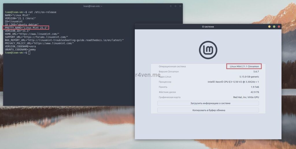 Проверить версию нашей ОС можно таким же образом, как мы делали это ранее: в программе «О системе» из главного меню или командой cat /etc/os-release в терминале: