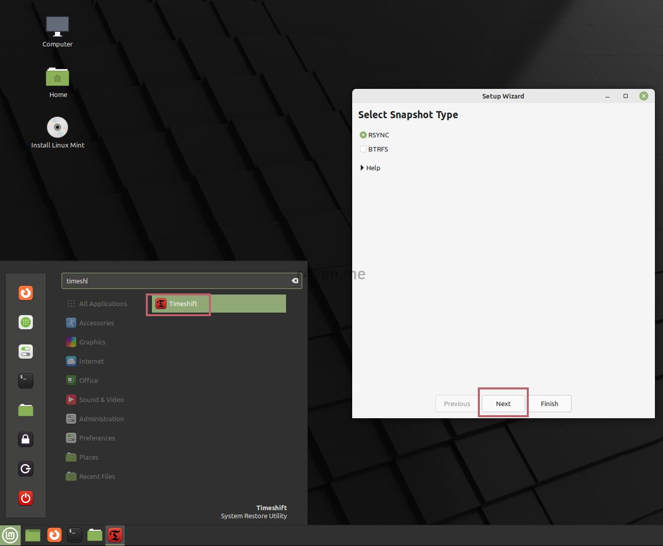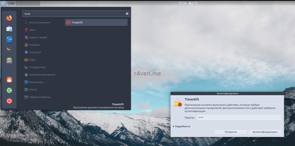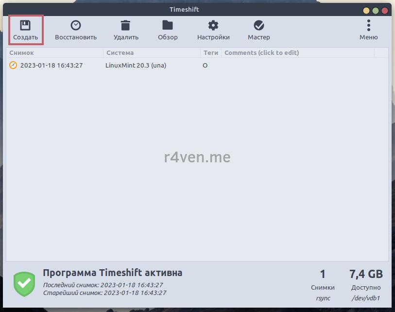 Теперь выполним бэкап с помощью встроенной в Linux Mint утилиты: Timeshift.