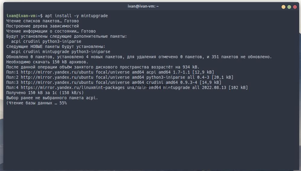 sudo mintupgradeВыполнение обновления до Linux Mint 21