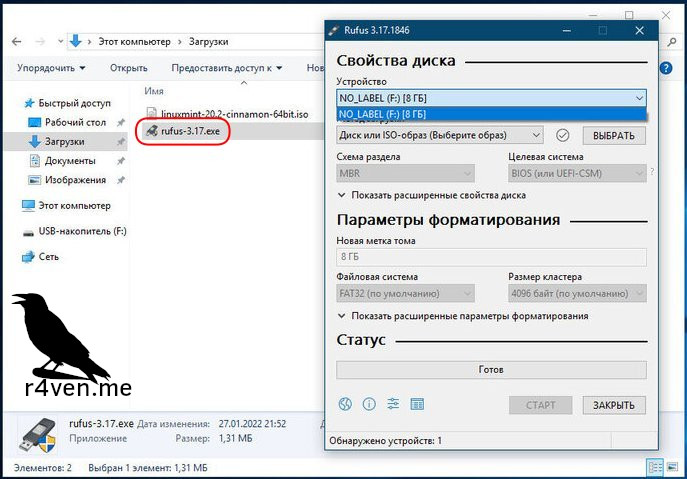 Чтобы установить Linux на компьютер, необходимо загрузить файл образа дистрибутива на usb флешку и сделать её загрузочной, чтобы BIOS компьютера распознал её как загрузочное устройство. Для создания такой флешки существует множество программных решений. Одно из самых простых и действенных — это программа Rufus. Идем в гугл и вбиваем rufus. Находим официальный сайт rufus.ie/ru или опять же клик и скачиваем программу. Устанавливать её не придется, она запускается в портативном режиме.