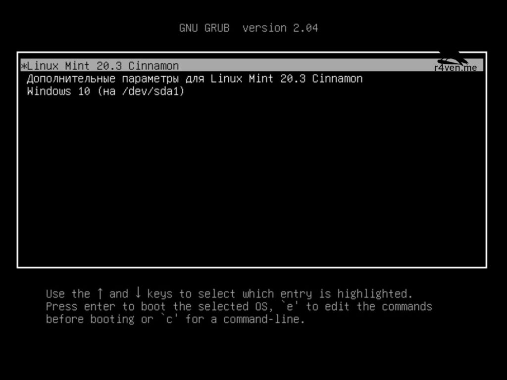 Если ничего не нажимать через 10 секунд будет выбран вариант по умолчанию, то есть Linux Mint.