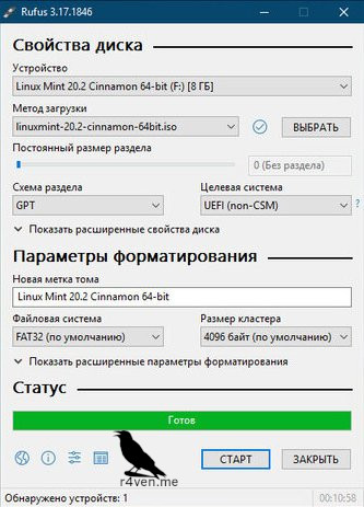 Наша загрузочная флешка на борту с Linux Mint готова.