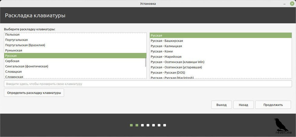 Выбор языка раскладки клавиатуры