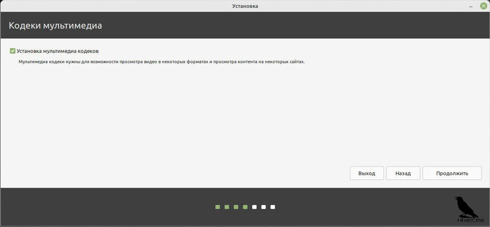Почему данному пункту уделено отдельное внимание? Потому что некоторые мультимедиа кодеки имеют закрытый исходный код и уважающие конфиденциальность и свободу своих пользователей разработчики Linux Mint предоставляют выбор их установки на усмотрение самих пользователей. Здесь мы ставим галочку, иначе на некоторых сайтах в интернете будут проблемы с запуском видео и прочего медиа контента.