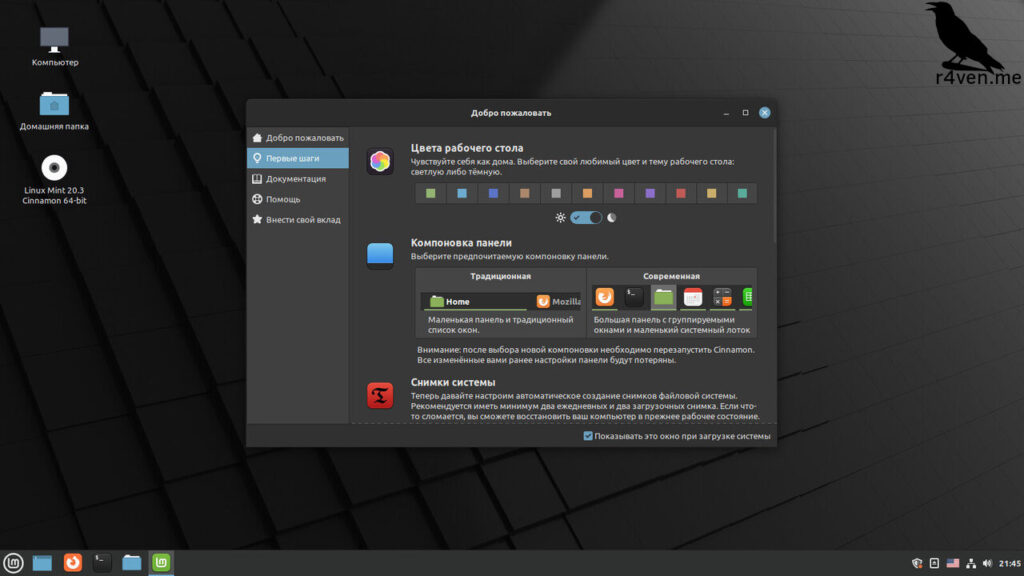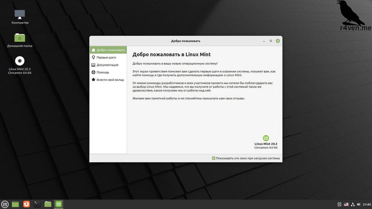 Первый запуск операционной системы Linux Mint
