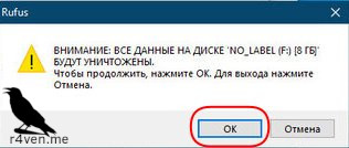 Подтверждаем, что перед созданием загрузочной флешки все данные с неё будут удалены: