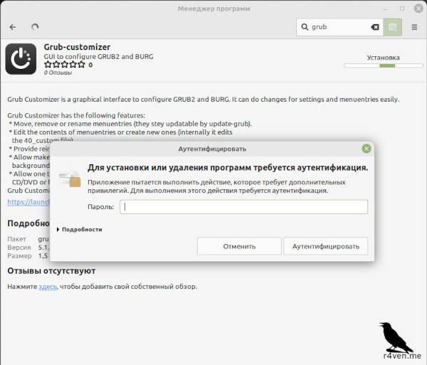 Теперь нажимаем «Установить», после чего нужно будет ввести пароль вашей учётной записи, который вы задали на этапе установки Linux Mint.