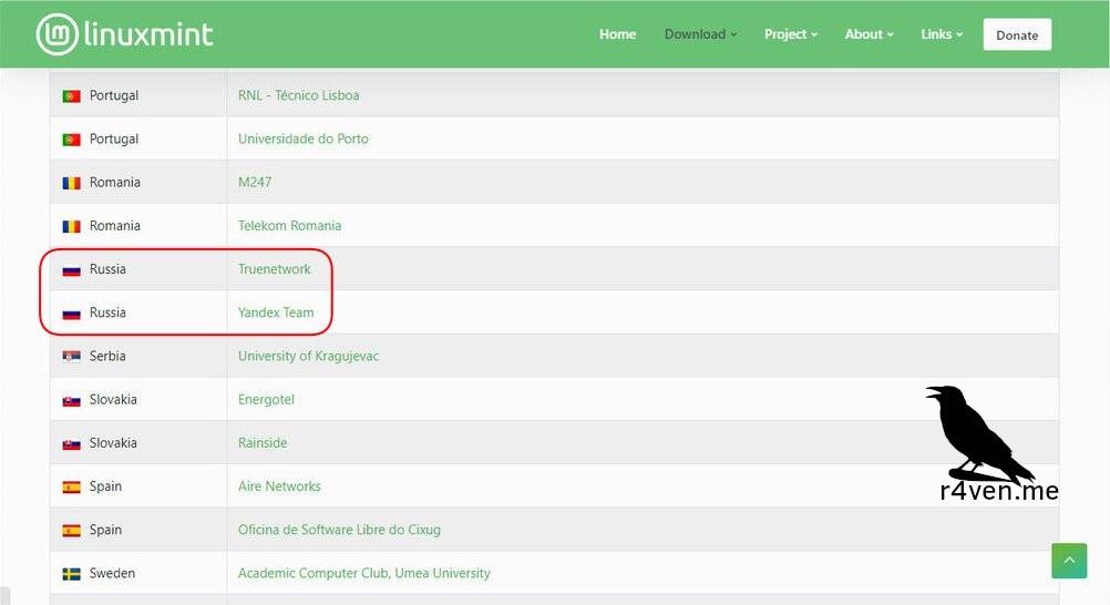 Для этого идём в гости к гуглу или яндексу и вбиваем в запрос «Linux Mint», затем переходим на официальный сайт проекта в раздел загрузок (Downloads) и выбираем редакцию Cinnamon или просто делаем клик. На этой странице представлены ссылки на зеркала загрузок, отсортированные по странам. Выбираем нужную страну, в данном случае Россия, зеркала в которой любезно предоставлены провайдерами Truenetwork и Yandex Team для достижения максимальной скорости скачивания.
