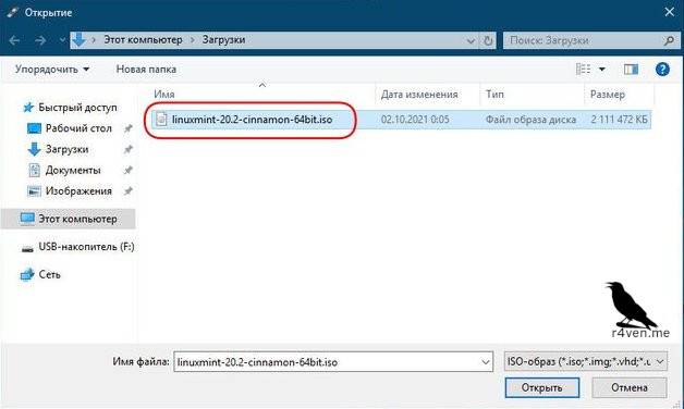 Теперь нужно выбрать скачанный нами ранее дистрибутив Linux Mint: