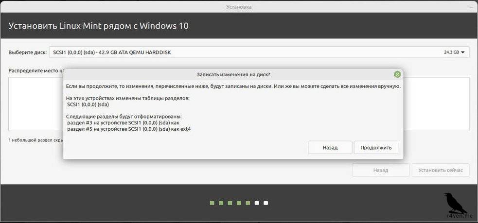 После определения пространства нажимаем «Установить сейчас» и дважды подтверждаем внесения изменений в разметку диска: