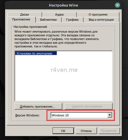 winecfgПосле чего Wine приступит к созданию окружения. Это займет некоторое время. После у вас должно появится вот такое окошко: