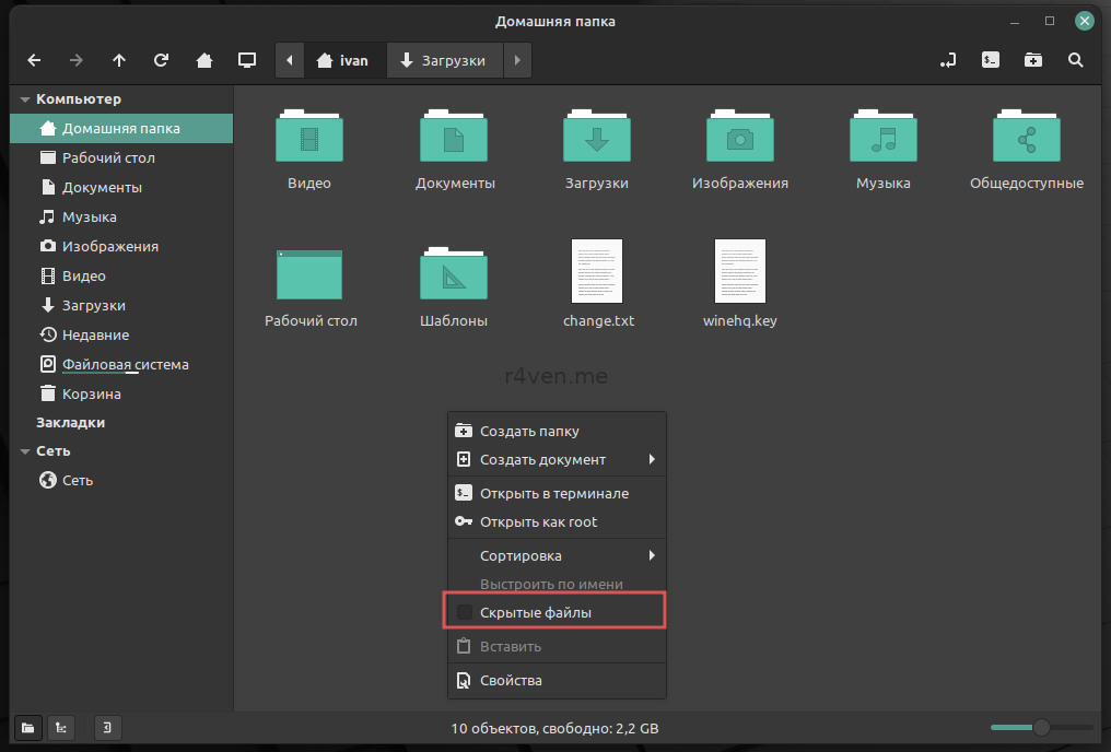 Чтобы увидеть скрытые файлы в Nemo вызовите контекстное меню и установите соответствующую галочку: