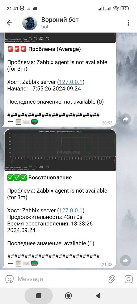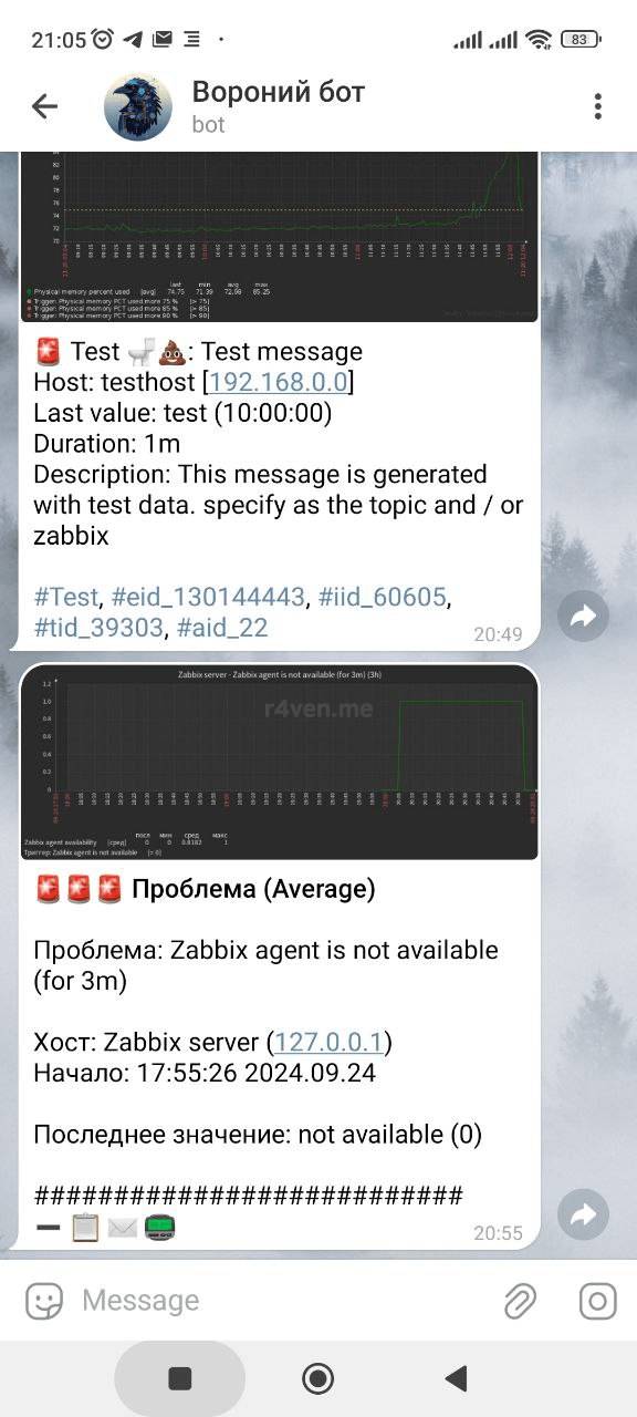 Настройка отправки уведомлений Zabbix в Telegram с графиком
