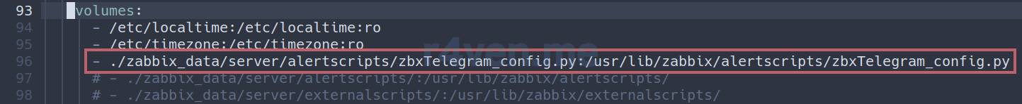 После запуска создаем папку скриптов алармов, из докер контейнера zabbix-server копируем туда конфиг файл скрипта отправки уведомлений в телегу и меняем его владельца: