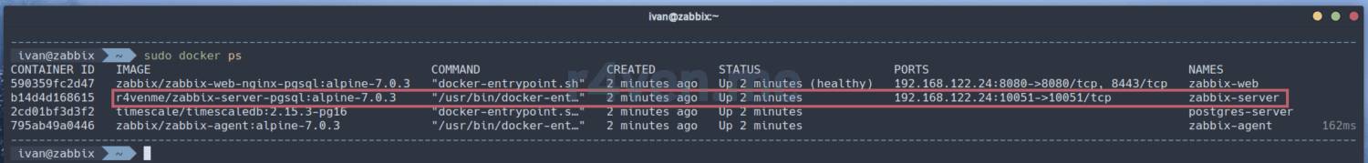 В инструкции ниже, рассмотрен вариант использования моего образа: r4venme/zabbix-server-pgsql:alpine-7.0.3, но вы также можете собрать собственный. Все файлы для сборки вы найдете в скачанном репозитории из начала статьи, в папке src.
