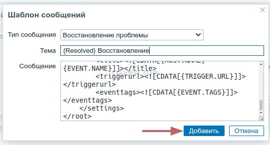 Далее переходим на вкладку шаблоны и добавляем 2 штуки: для проблем и для восстановления: