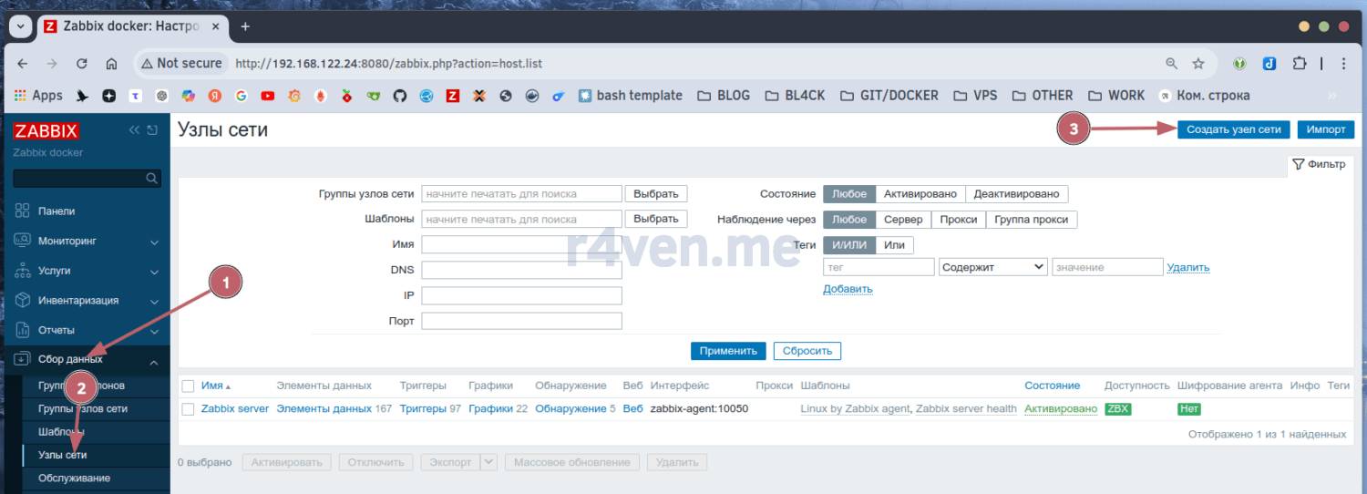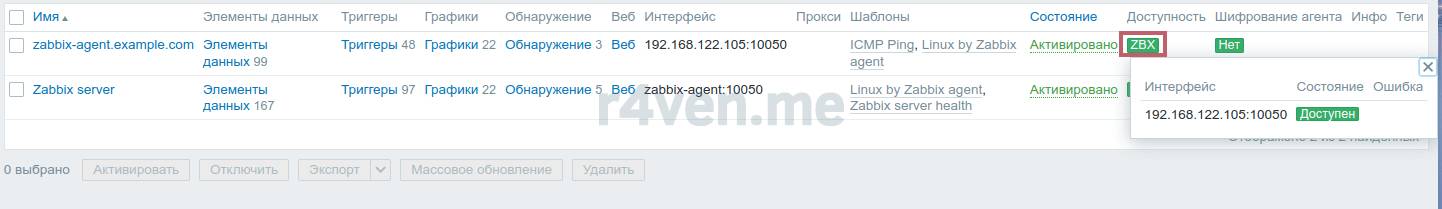Переходим в «Мониторинг» — «Узлы сети» и через некоторое время: