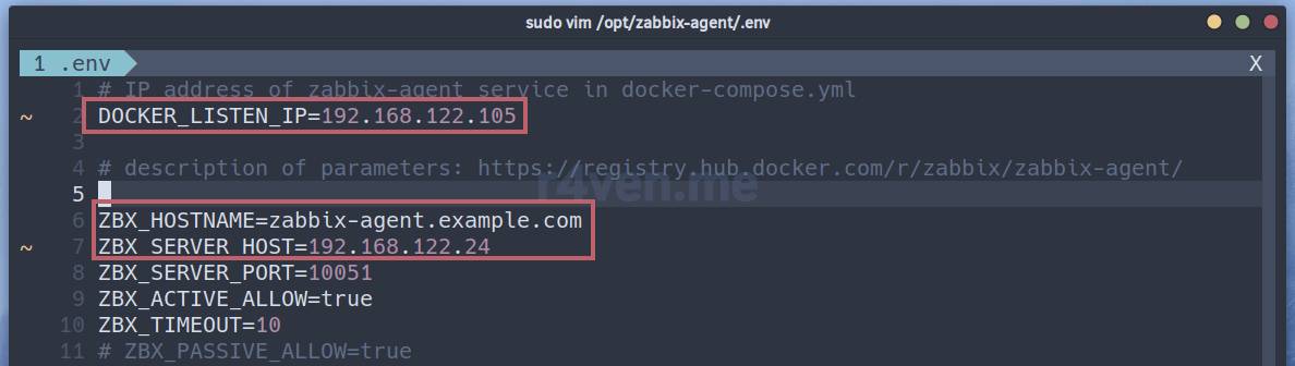 Корректируем .env файл — файл с параметрами Zabbix агента.