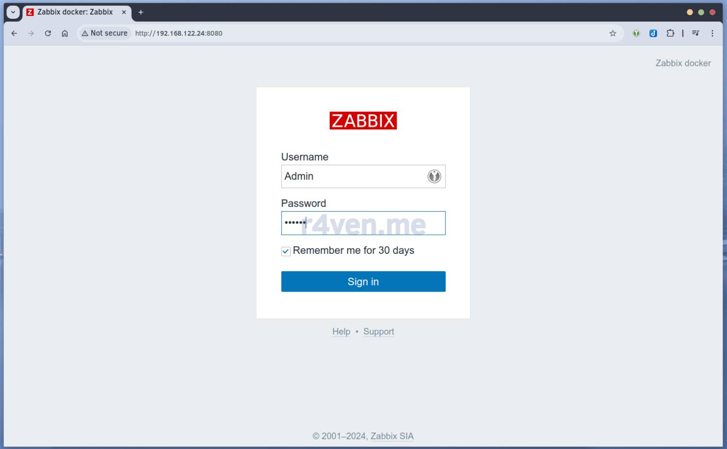 Для авторизации в веб интерфейсе используйте стандартные логин: Admin и пароль: zabbix