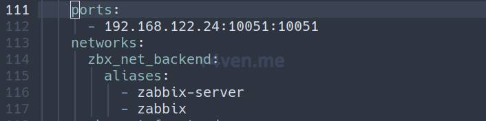 Например, внутренний адрес моего сервера в сети VPN: 192.168.122.24. Правлю docker-compose.yml: