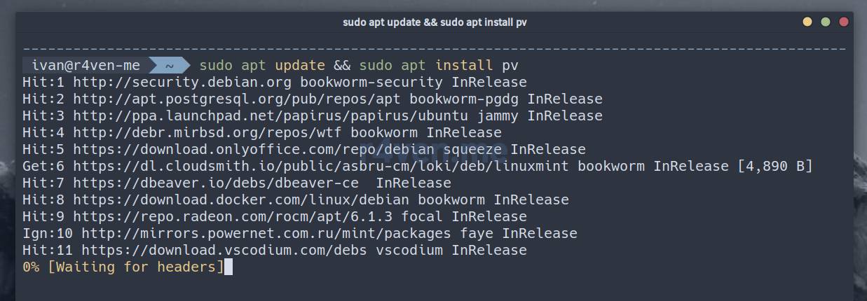 Из списка выше доустановить потребуется лишь утилиту pv (крайне полезная вещь). Она есть в стандартных репозиториях: