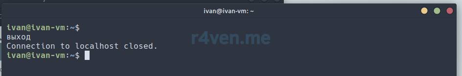Выйти из сеанса SSH можно аналогичным способом, как и в обычной терминальной сессии: перезагрузить компьютер командой exit или Ctrl+d: