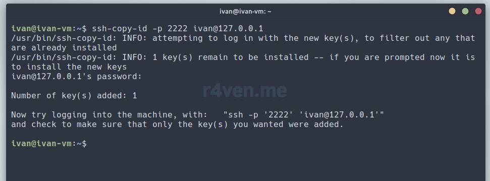 ssh-copy-id -p 2222 ivan@127.0.0.1