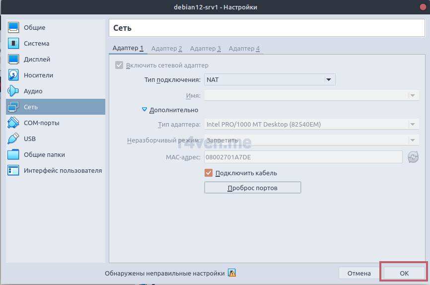Подключение к виртуальной машине (VirtualBox) Debian 12 по SSH