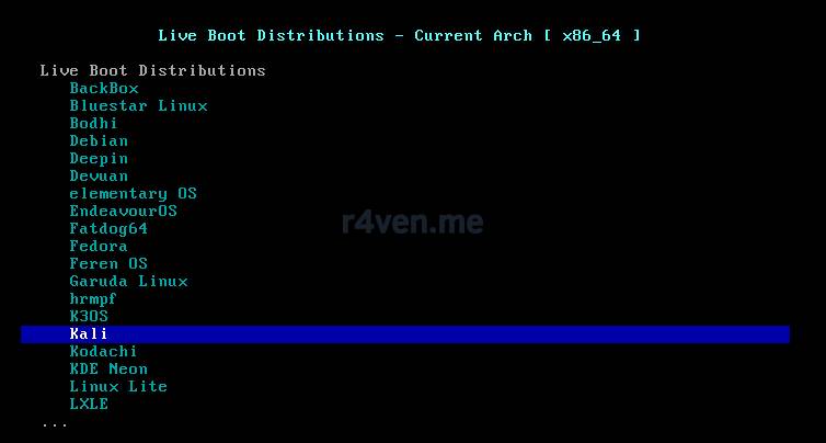 Представим, что мы супер хацкеры и попробуем запустить LiveCD сессию Kali Linux. Выбираем соответствующий пункт: